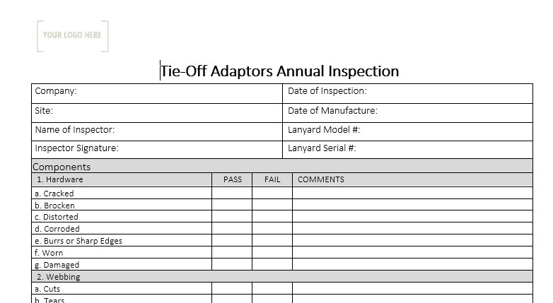Download a  Self-retracting Lanyard Annual Inspection template you can customize.  This form will assist you when completing annual inspection on harnesses as per OHS legislation.