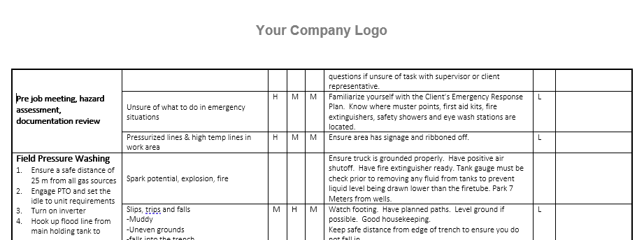 The safe job procedure contains the required information that meets OH&S requirements includes: