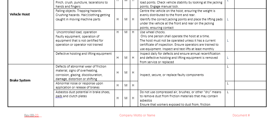 The safe job procedure contains the required information that meets OH&S requirements includes:
