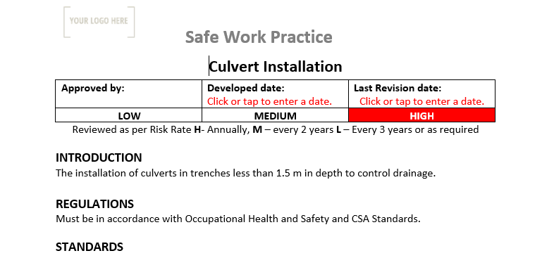All Safe Work Practices & Code of Practices are sent in word formatting so they can be customized for your company.
