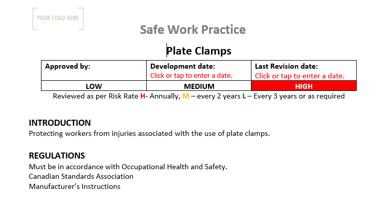 All Safe Work Practices & Code of Practices are sent in word formatting so they can be customized for your company.