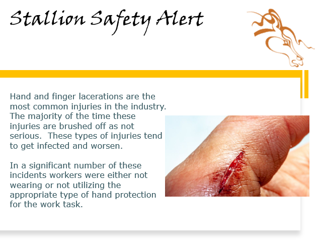 Han and finger lacerations are the most common injuries in the industry.  In a significant number of these workers were either not wearing the appropriate  hand protection.